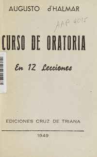 Curso de oratoria : en 12 lecciones. Santiago :Eds. Cruz de Triana,1949. 79 p., [1] h. de lám. ;19 cm.