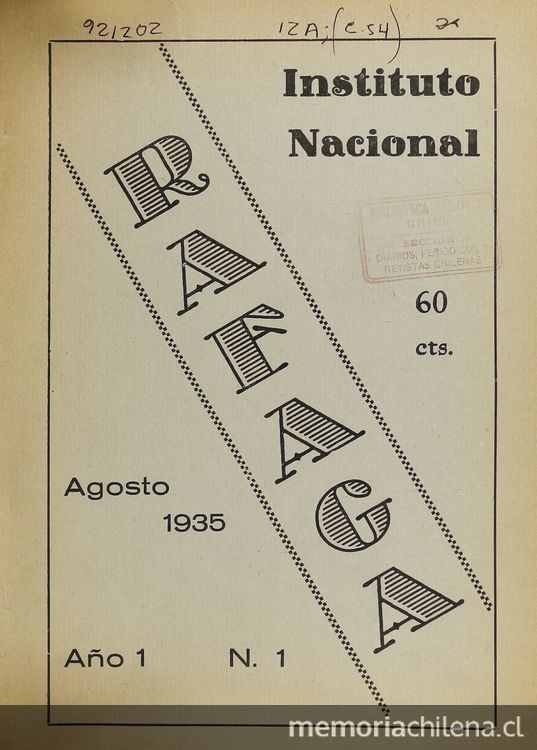 Directorio de la revista Ráfaga del Instituto Nacional de Chile, 1935.