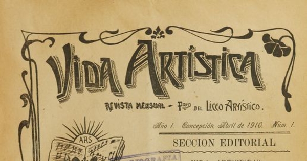 Vida artística / Liceo Artístico. Concepción : El Liceo Artístico, 1910. 6 números, año 1, número 1, (abril 1910), página 1