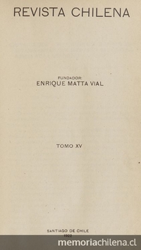 Último año en que circula la Revista Chilena, con catorce años de publicación periódica.