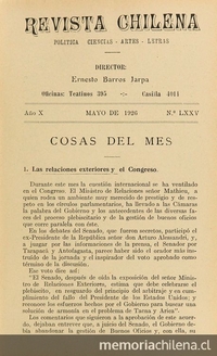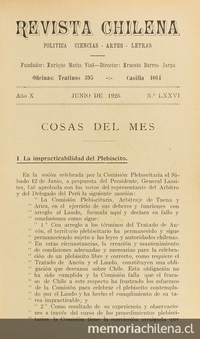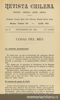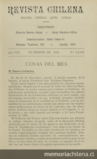 La Revista Chilena vuelve a cambiar de directores. Asumen Ernesto Barros Jarpa y Jorge Gustavo Dávila. Solo el primero seguiría en la dirección durante 1926.
