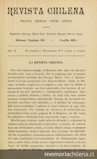 Durante catorce años, la Revista Chilena contribuyó al desarrollo de la actividad cultural e intelectual de las primeras décadas del siglo XX. En sus ediciones se publicaron artículos relacionados con la política, la historia y las humanidades, abriendo el debate de la sociedad chilena del centenario.