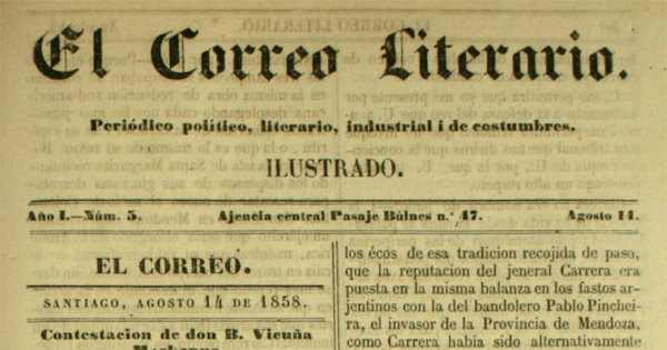 El Correo literario. Santiago : Imprenta del Conservador, 1858-1865. 2 v., [ca.138] hojas de láminas (algunas plegadas), número 5, (11 agosto 1858), páginas 58-60