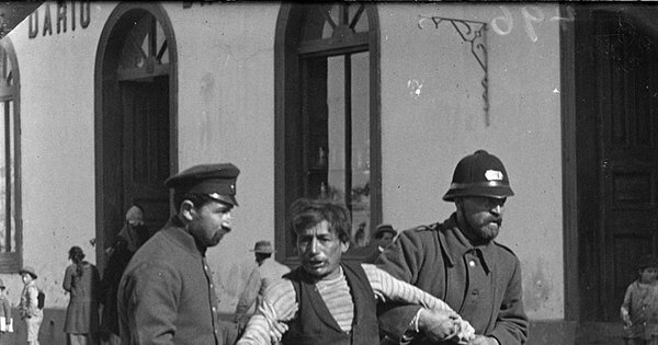 Dos policías llevan detenido a un hombre