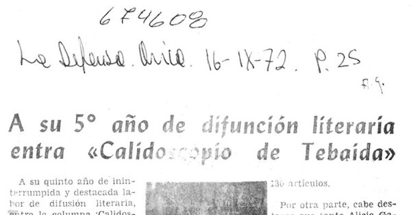La Defensa. Arica : [Editor no identificado], 1950?-1957. 6 volúmenes (16 septiembre 1972), página 25