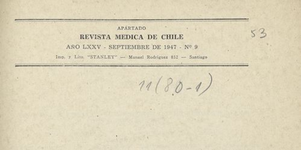 Apartado de la Revista Médica, año 75, septiembre de 1947, número 9, páginas 581-587