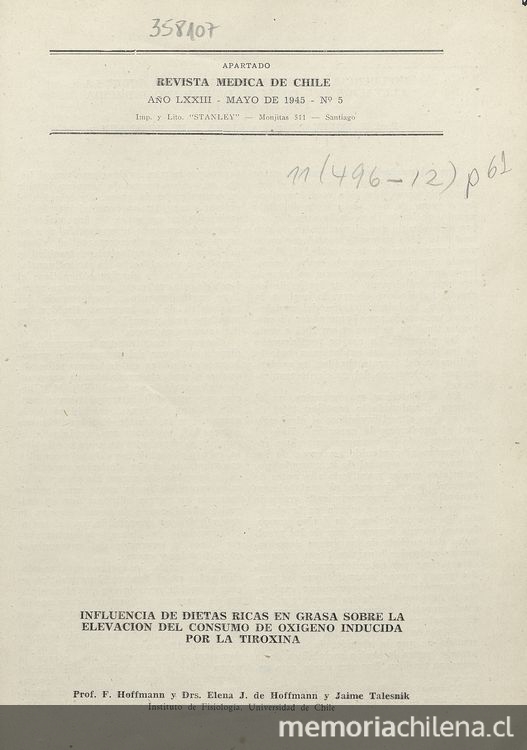 Santiago : Revista Médica, 1945 (Santiago : Imp. y Lito. Stanley)