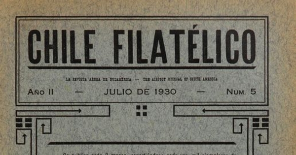 Chile filatélico / órgano oficial de la Sociedad Filatélica de Chile. Santiago : La Sociedad, 1929- volúmenes, año II, número 5, (julio 1930)