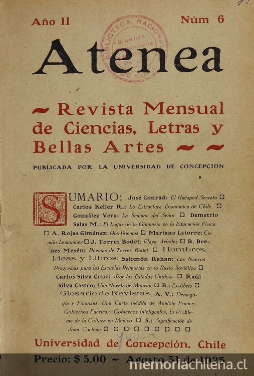 Atenea: año 2, número 6, 31 de agosto de 1925