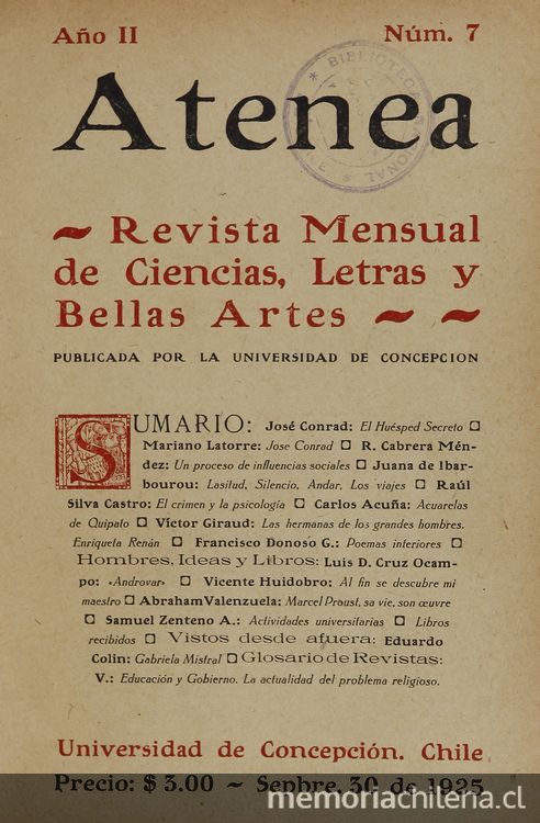 Atenea / Universidad de Concepción. Concepción : La Universidad, 1924- volúmenes, año 2, número 7, (30 septiembre 1925)