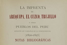 La Imprenta en Arequipa, El Cuzco, Trujillo y otros pueblos del Perú: durante las campañas de la Independencia (1820-1825): notas bibliográficas