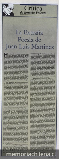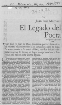 Para muchos poetas y críticos actuales Juan Luis Martínez es "el secreto mejor guardado de la poesía chilena". Su actitud experimental que borra los límites entre literatura y arte continúa generando perplejidad y entusiasmo.