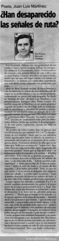 Enrique Lihn y Pedro Lastra publican Señales de ruta de Juan Luis Martínez