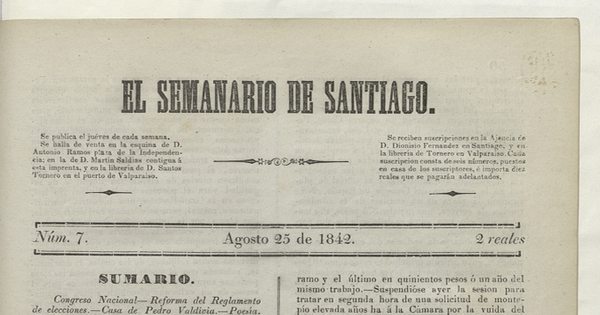 El Semanario de Santiago: número 7, 25 de agosto de 1842