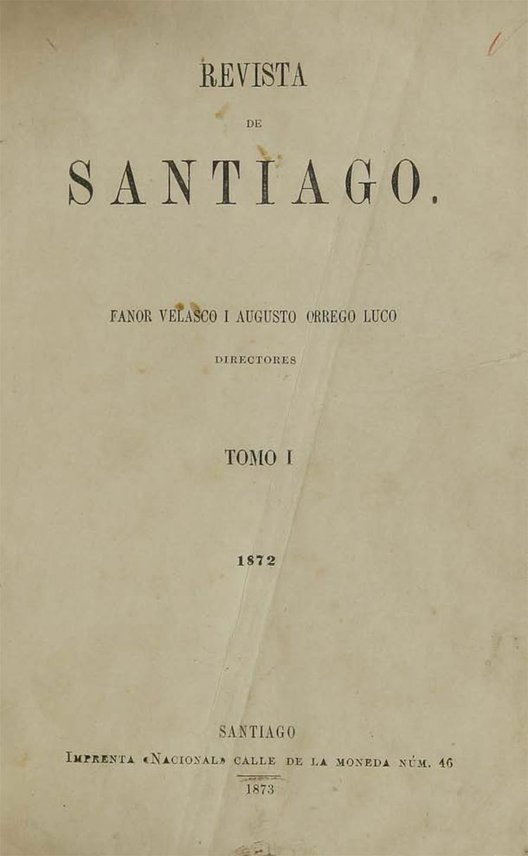 Revista de Santiago : literatura, artes i ciencias. Santiago : Librería Central de Augusto Raymond, 1872-1873. 3 volúmenes, tomo I, (1872), páginas [448]-452