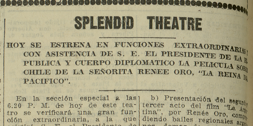 Materias: Cine - Chile - 1900-Publicidad en los Diarios - Chile
