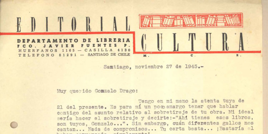 [Carta] 1945 nov. 27, Santiago, Chile [a] Gonzalo Drago [manuscrito]