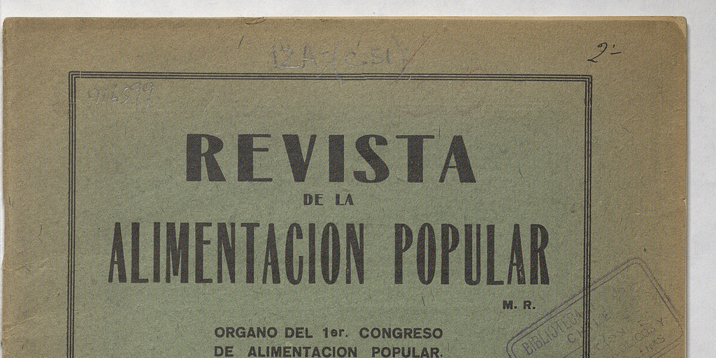 Revista de la alimentación popular / órgano oficial del Comité Ejecutivo del Primer Congreso Nacional de Alimentación Popular en Chile. Valparaíso : El Comité, 1930-1931. (Valparaíso : Imp. Roma), volúmenes, año 1, número 1, (octubre 1930)