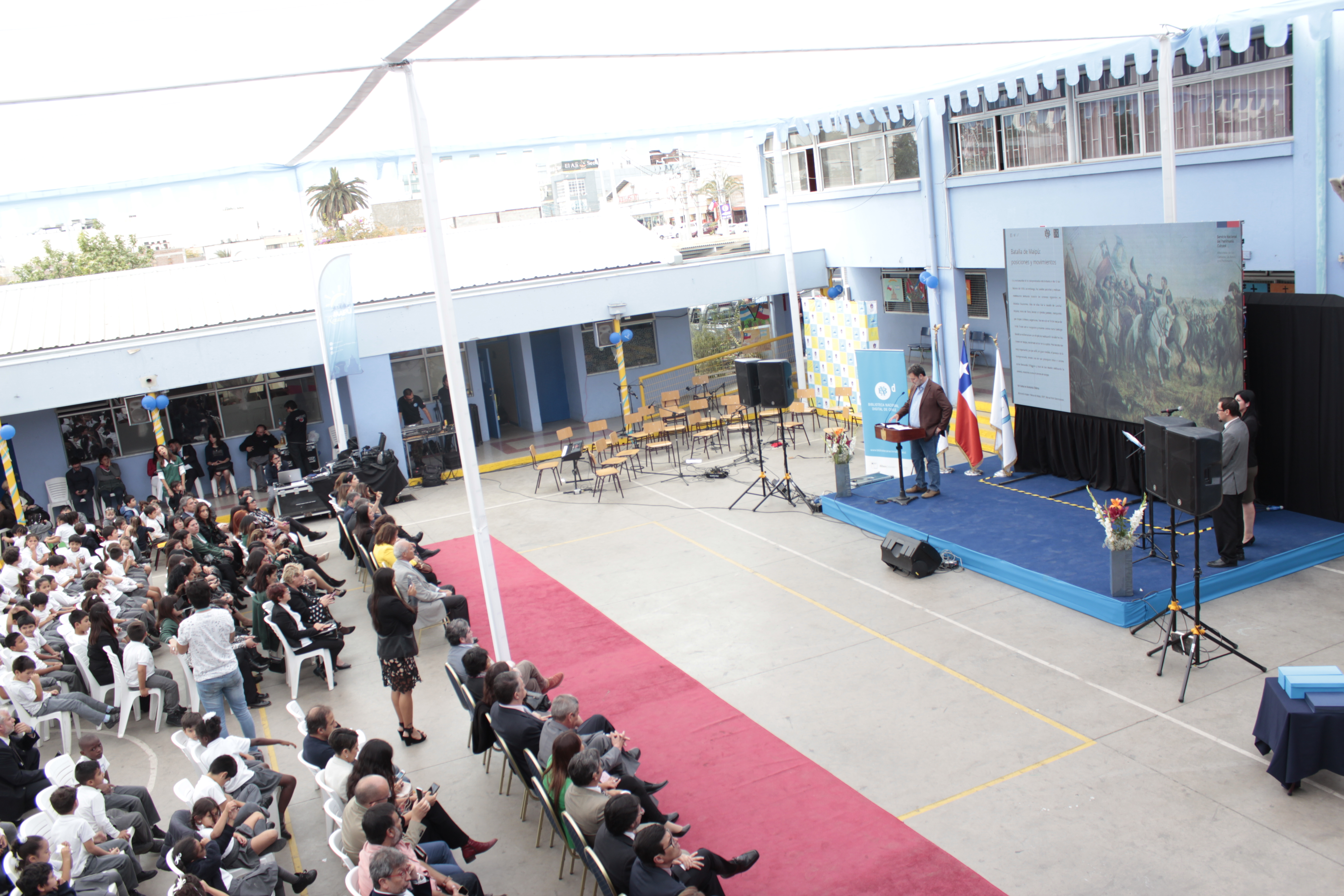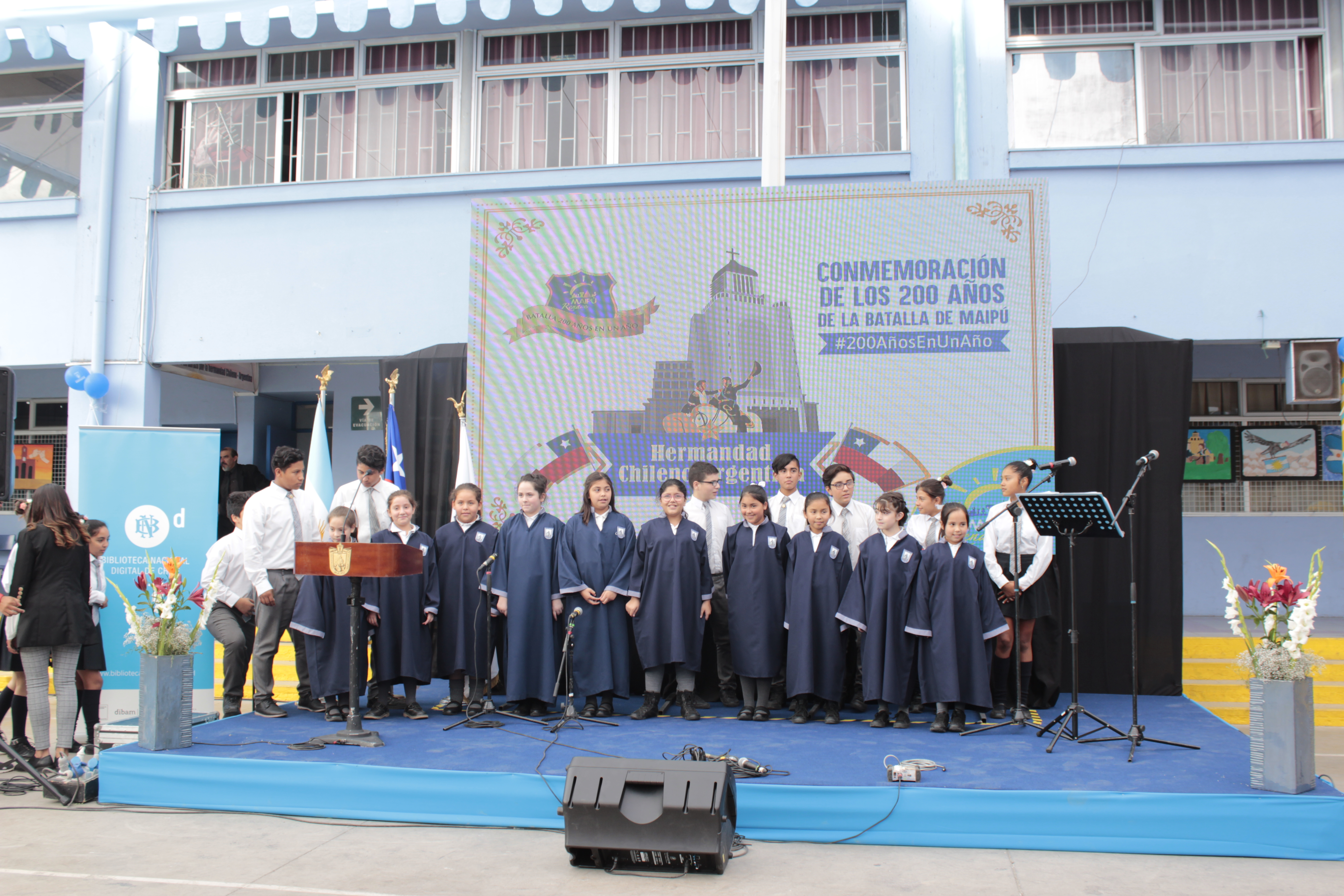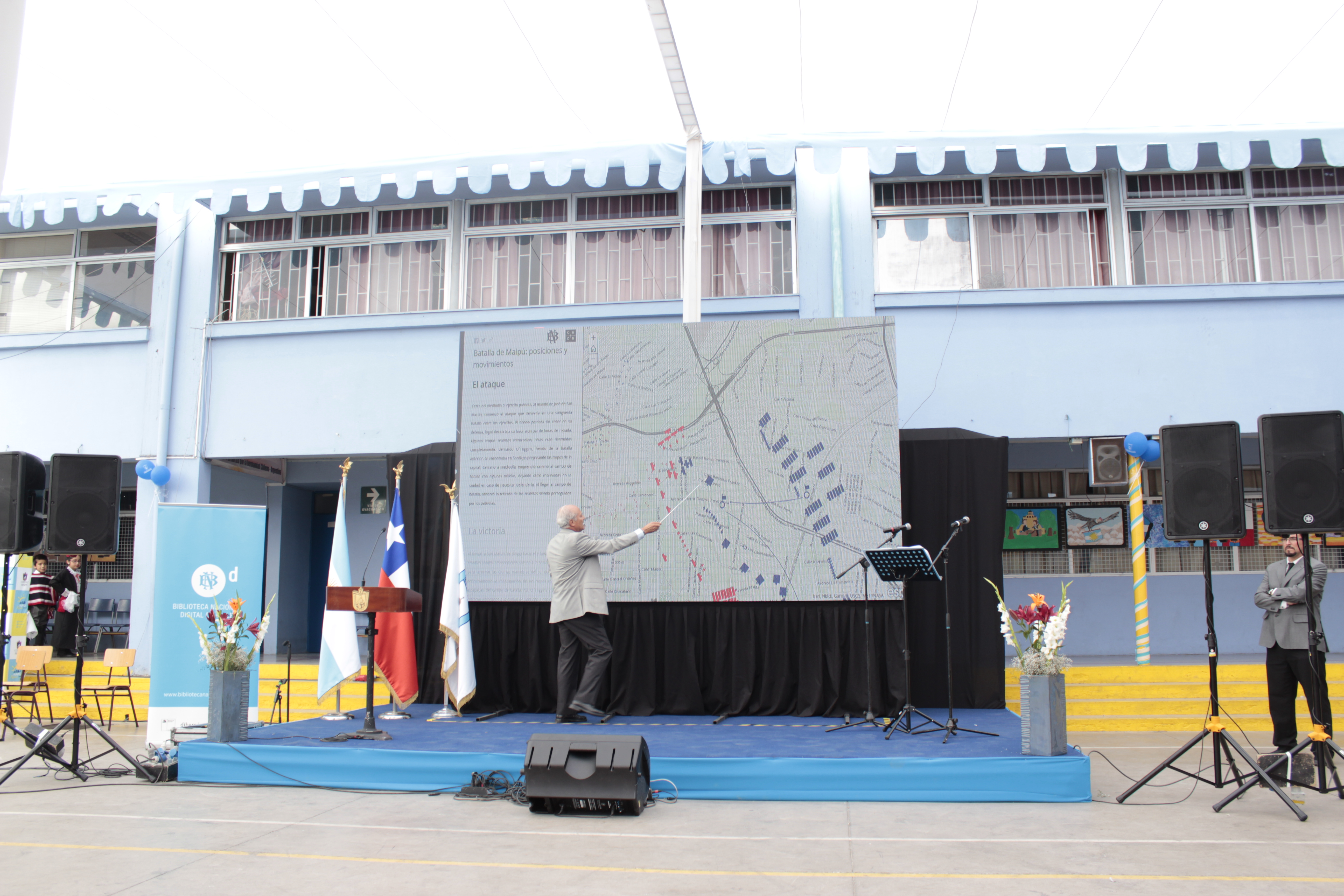 La presentación de la nueva aplicación cartográfica se realizó en la escuela General San Martín de Maipú, durante el acto de la Hermandad Chileno-Argentina. A la ceremonia asistieron Andrea Díaz Troncoso, Directora de la Secretaría Comunal de Planificación del municipio de Maipú (Secpla), Carlos Mascías, Ministro Consejero de la Embajada Argentina en Chile, y María del Carmen Pasarin, Agregada Cultural de la Embajada Argentina en Chile, además de autoridades, profesores y estudiantes de las escuelas General San Martín y la Escuela Básica General O'Higgins de Maipú. Allí, el Jefe de Colecciones Digitales y Especiales de la Biblioteca Nacional de Chile, Roberto Aguirre, junto al historiador de la Academia de Historia Militar, el coronel Gabriel Rivera, mostraron por primera vez el nuevo Mapa Patrimonial.