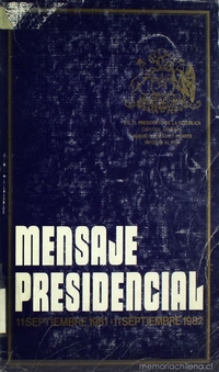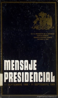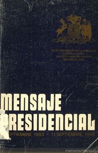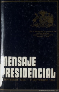 Mensaje presidencial : S.E. el presidente de la república capitán general Augusto Pinochet Ugarte informa al país. [Santiago :s.n.],1974-1989. 16 v. ;27 cm.