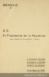 Mensaje de S.E. el Presidente de la República don Gabriel González Videla : al Congreso Nacional al inaugurar el período ordinario de sesiones. [Santiago :s.n.,1947-. v. ;27 cm.