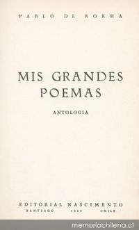 Mis grandes poemas : antología. Santiago :Nascimento,1969. 350 p. ;27 cm.
