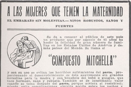 A las mujeres que temen la maternidad: compuesto Mitchella, 1917