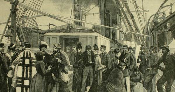 Comerciantes de pieles a bordo de un buque inglés, en el Estrecho de Magallanes, 1886