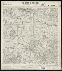 San Vicente de Tagua-Tagua Departamento de Cachapoal. [Santiago] :El Instituto,1930. 1 mapa montado en lienzo ;42 x 42 cm. sobre pliego 49 x 43 cm.