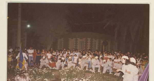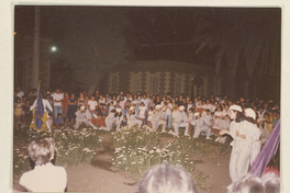 Función de Romeo y Julieta frente al Teatro Huemul en Barrio Franklin: primer acto, escena quinta: salón en la casa de los Caputelo, 1987