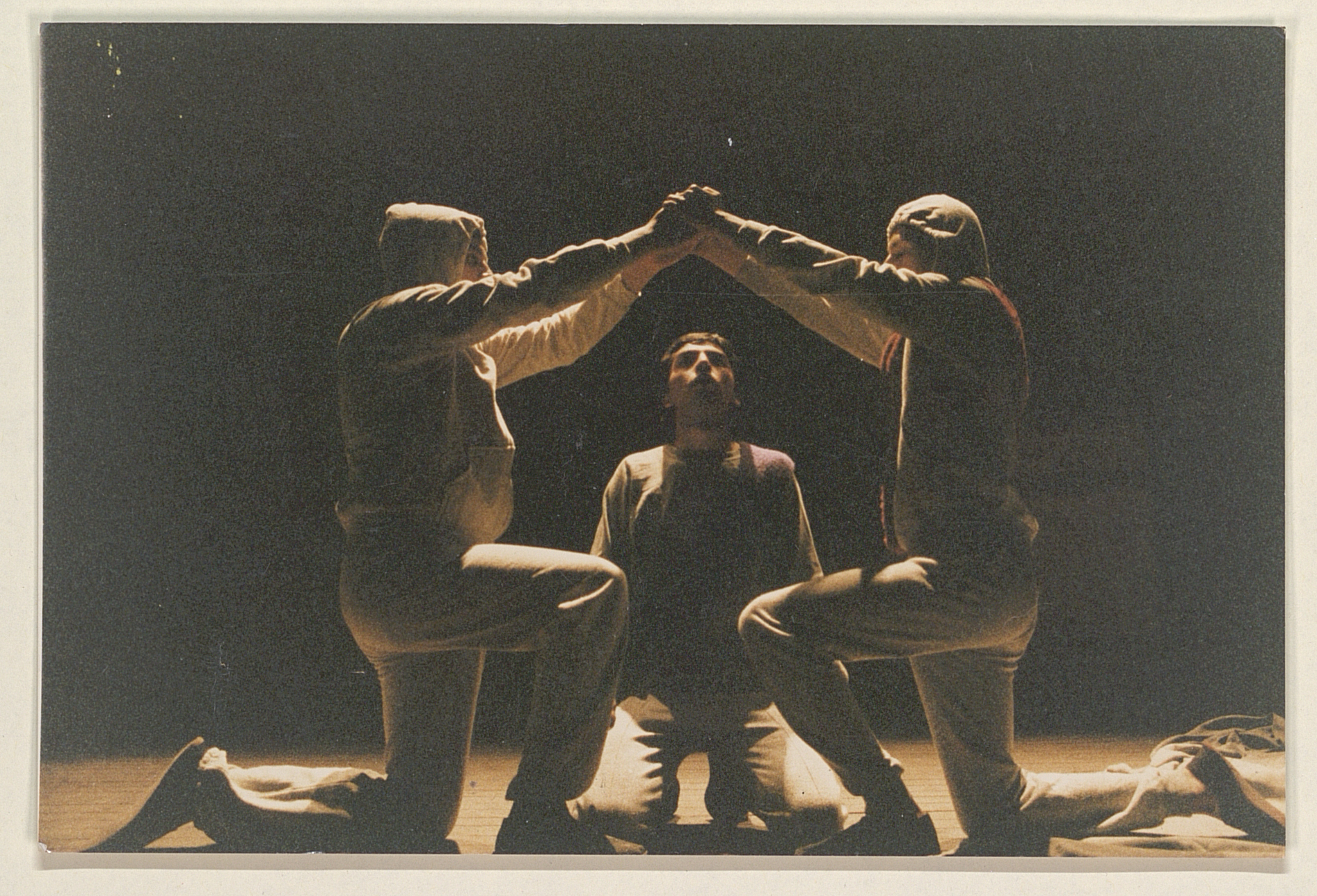 Función de Los jueces y los reyes, escena de la guillotina. Sala Enrique Alvear, Quinta Normal, 1984