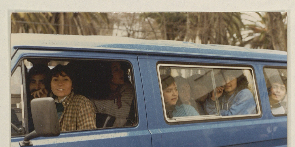 María Teresa Sepúlveda (productora) y elenco en gira de Teatro Q a poblaciones, 1987