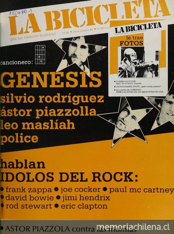 La Bicicleta. Santiago : Sociedad Editorial Granizo, 1978-1990 (Santiago : Taller de Comunicaciones Scout) 9 volúmenes, número 58, (octubre 1984)