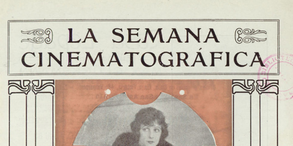 La Semana cinematográfica. Santiago : [Editor no identificado], 1918-1920. 3 volúmenes, número 3, (23 mayo 1918), página 1