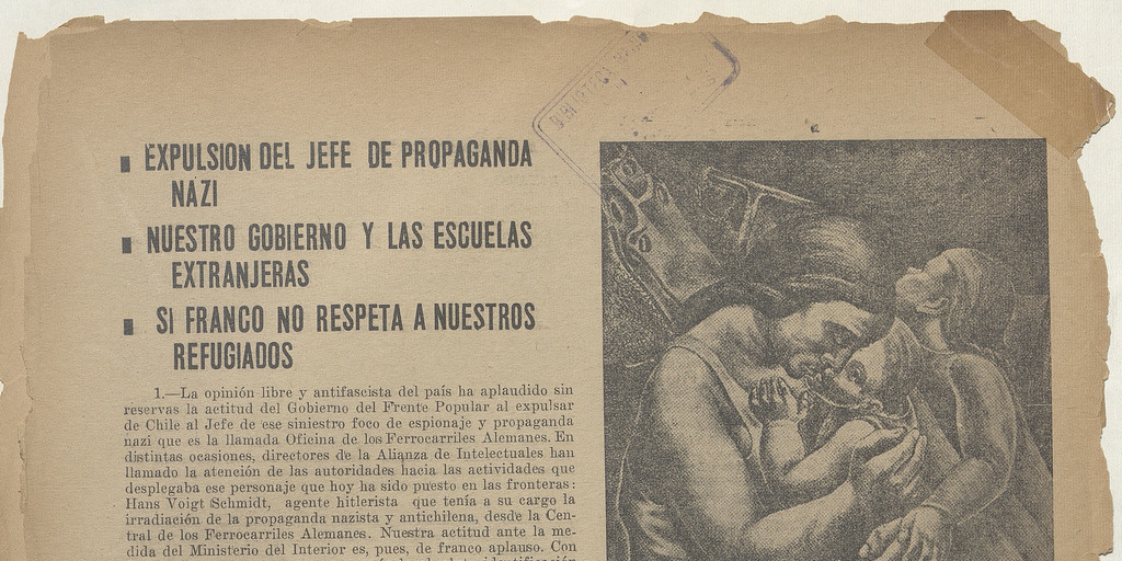 Aurora de Chile / Alianza de Intelectuales para la Defensa de la Cultura. Santiago: La Alianza, 1938-1940. 3 volúmenes, tomo 4, número 11, (5 junio 1939)