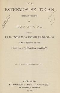 Los estremos se tocan : comedia en tres actos. Valparaíso :Impr. del Mercurio de Tornero y ,1872. 53 p. ;22 cm.
