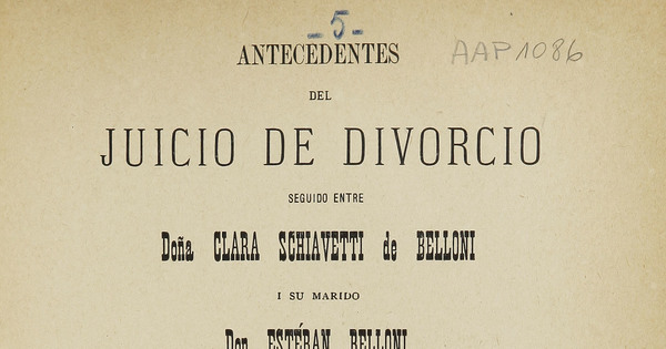 Antecedentes del juicio por divorcio seguido entre doña Clara Schiavetti de Belloni y su marido Esteban Belloni