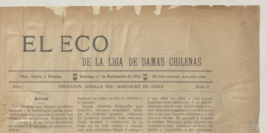 El Eco de la Liga de Damas Chilenas: año 1, número 2, septiembre de 1912