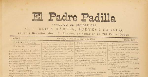El Padre Padilla. Santiago : J.R. Allende, 1884-1889. 5 tomos, año 2, número 267, (25 mayo 1886), página 4
