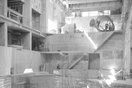 Vista interior de la construcción de la casa de máquinas de la Central Hidroeléctrica Isla, Los Cipreses, 1959
