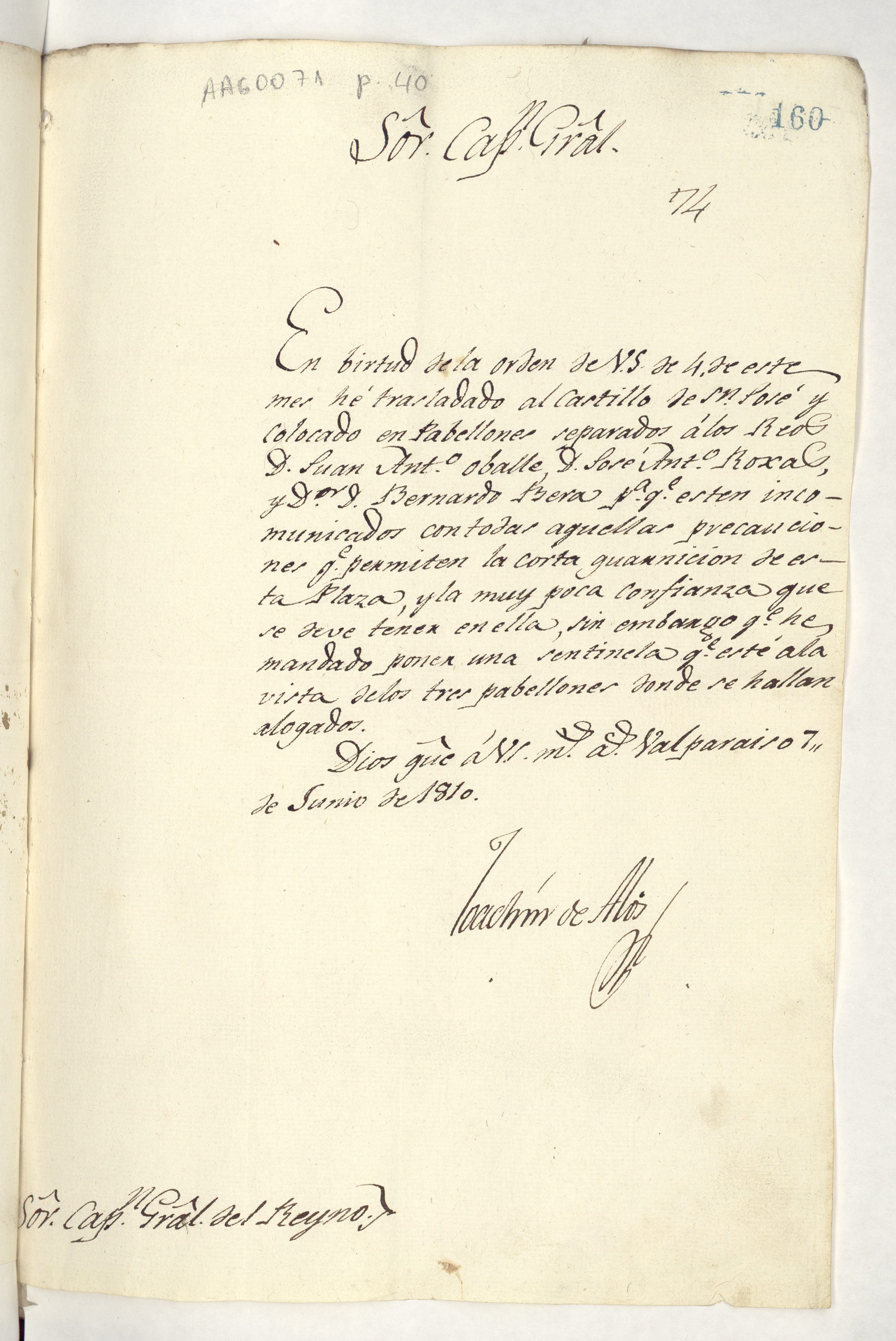 [Oficio] 1810 Jun. 7, Valparaíso [manuscrito] : [al] S[eñ]or Cap[ita]n G[ene]ral del Reyno