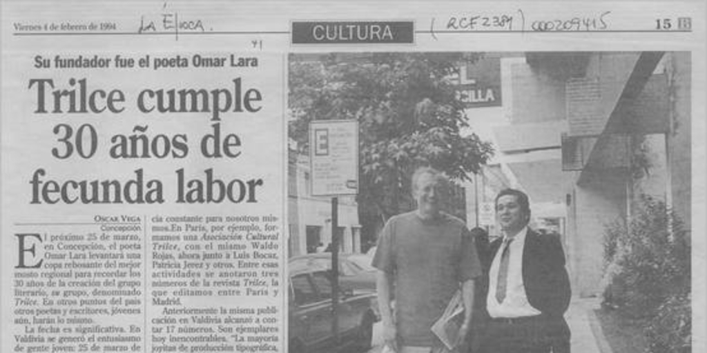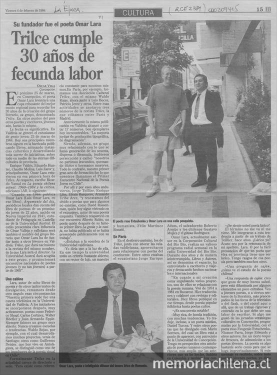 La Época. Santiago : Impresiones y Comunicaciones, 1987-1998 (Santiago : Impasa) 273 volúmenes, (4 febrero 1994), página B15
