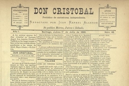 Don Cristóbal / redactado por Juan Rafael Allende. Santiago : Imprenta Estado, 1890. 80 números, año 1, número 46, (17 julio 1890)