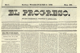 El Progreso. Santiago : Imprenta del Progreso, 1842-1853. 9 tomos, año 1, número 208, (19 julio 1843), página 3