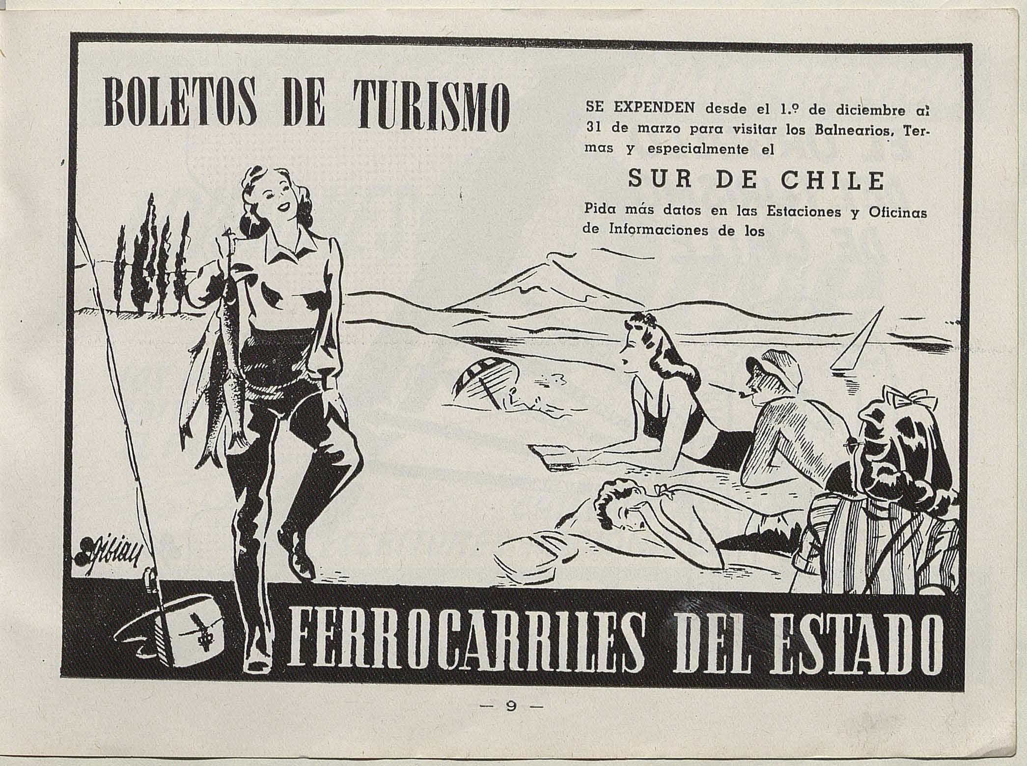 Publicidad de boletos de turismo de la Empresa de Ferrocarriles del Estado, 1943