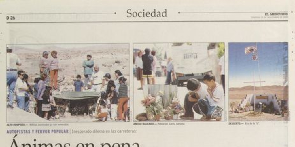 El Mercurio. Santiago : Talleres El Mercurio, 1900- . volúmenes, (30 noviembre 2003), páginas 26-27 (cuerpo D)