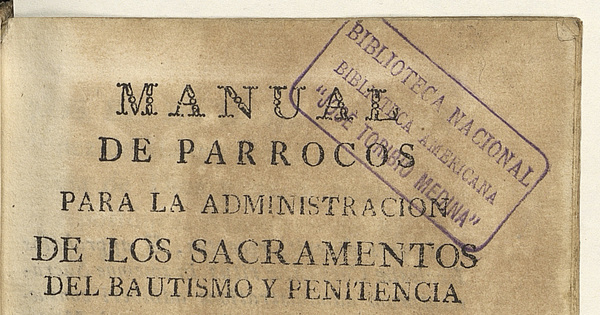 Manual de párrocos para la administración de los sacramentos del bautismo y penitencia enteramente conforme al ritual romano ... : sale a luz en esta impresión ...