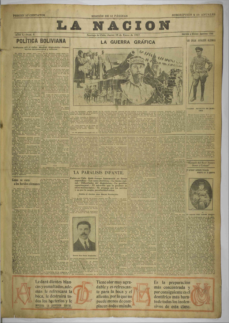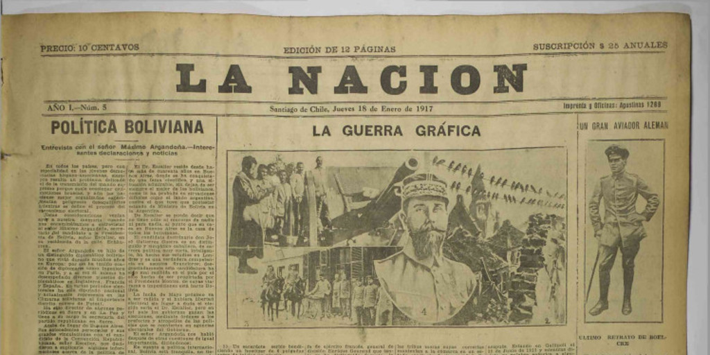La Nación. Santiago : Talleres Gráficos. La Nación, 1917-2010, volumenes, año 1, número 5, (18 enero 1917), páginas 7-8