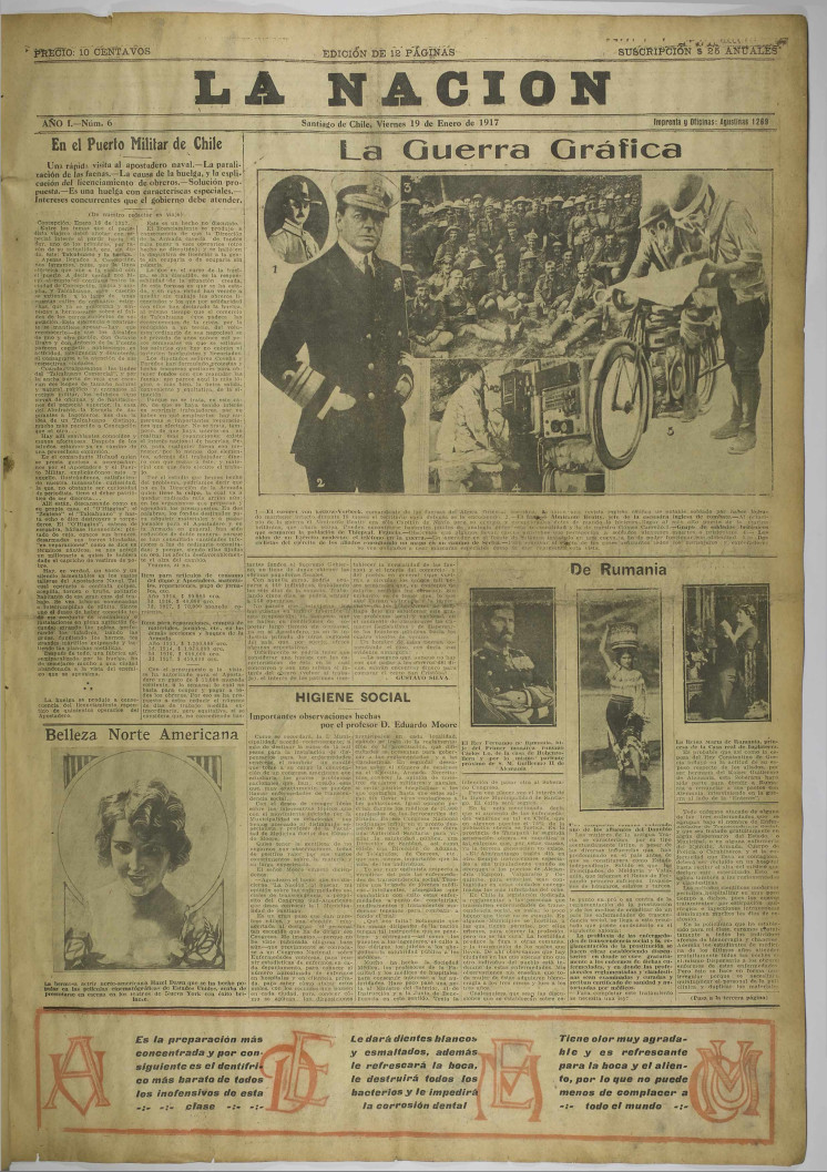 La Nación. Santiago : Talleres Gráficos. La Nación, 1917-2010, volumenes, año I, número 6, (19 enero 1917), páginas 7-8
