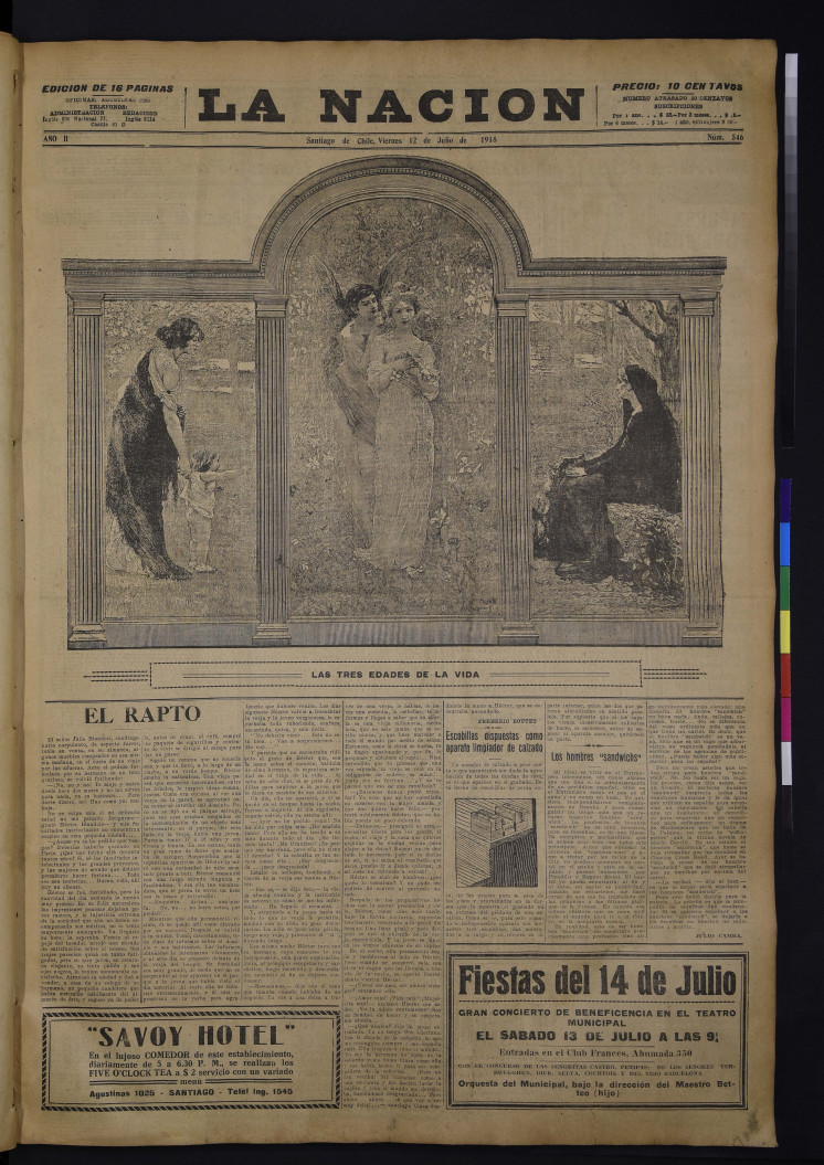 La Nación. Santiago : Talleres Gráficos. La Nación, 1917-2010, volumenes, año II, número 546, (12 julio 1918), páginas 11-12